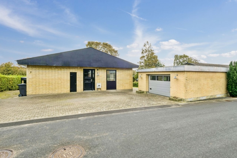 Isoleret garage fra 2004 med varmepumpe, der rummer hele 50 m2 i et stort rum - også perfekt til "hæng ud rum", gildesal, værksted, hobbyrum eller som ekstra opbevaring. Yderligere er der den oprindelig muret garage på 30 m2 som også kan benyttes til mange formål. Grunden er anlagt med et større fliseområde som strækker sig rundt om om villaen og til en sydvendt terrasse. Grunden giver i den grad mulighed for både at bibeholde en nem have, men også at lave små oaser til afslapning og leg, da grunden er kuperet og kan give et vidunderlig udendørs miljø.