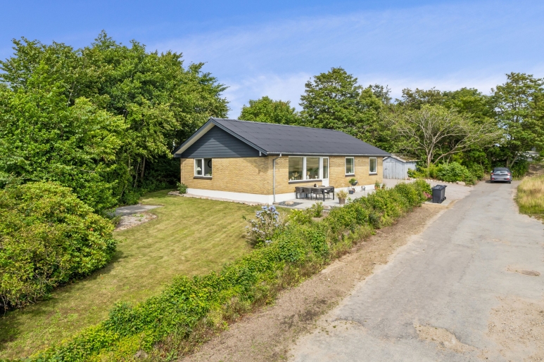 Ejendommen inkluderer også et funktionelt udhus med et stort bryggers og hobbyrum perfekte rammer for kreative projekter eller ekstra opbevaring. Haven er velanlagt med gode læforhold, mens gårdspladsen giver rigelig plads til parkering.