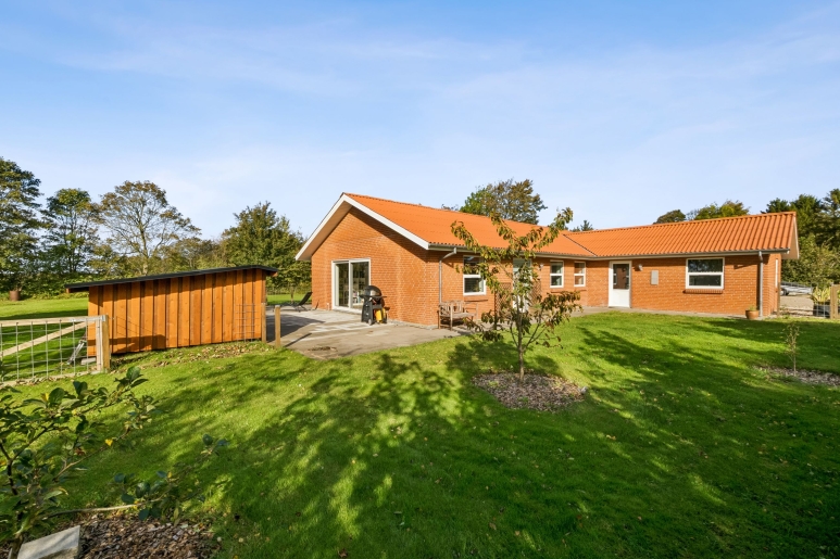 Grunden på hele 3.971 m2 er smukt anlagt med flisebelagte terrasser fra 2016 omkring huset samt en vidunderlig have fyldt med muligheder for både leg og afslapning. Beliggende i en mindre landsby kendt for sit gode sammenhold tilbyder ejendommen kort afstand til indkøbsmuligheder samt naturskønne gåture ved søer og skove.